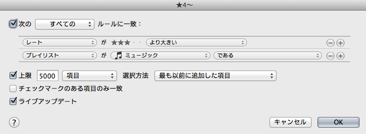 筆者はまめに1曲づつレートを付けているため、★4以上の曲をiPhoneへ同期するようにしています。